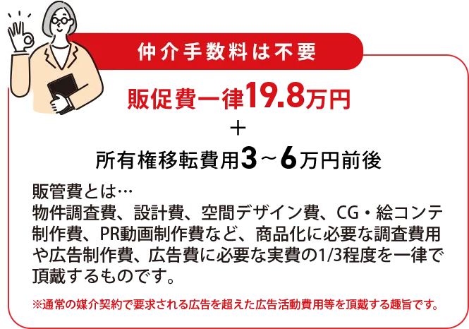 一律の販促費198,000円以外に仲介手数料はかかりません。